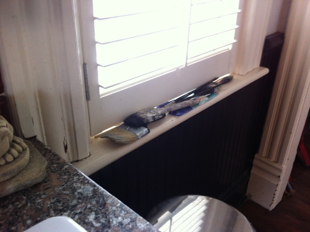 6. Paintbrushes grace many of the available surfaces around your sink(s).