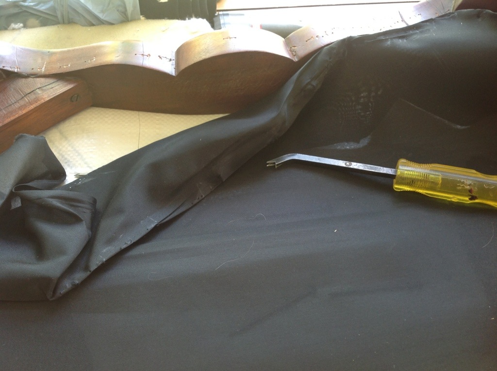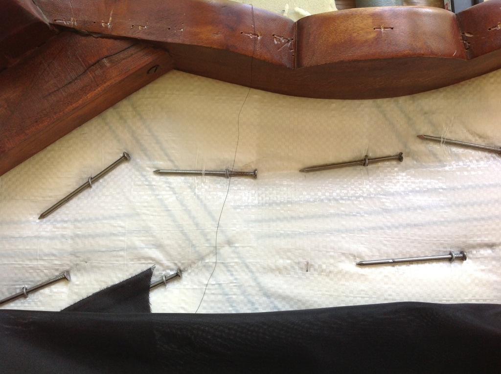 Pull as tight as possible, and tie twice to hold in place. Replace the lining.