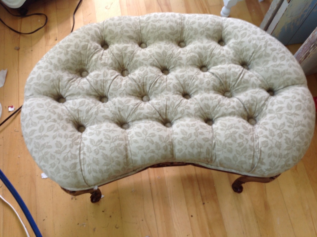 A popped button! Of all the annoying things to go wrong on a tufted piece of furniture, this would be it. And the most common. Here’s what you do to fix the little problem.