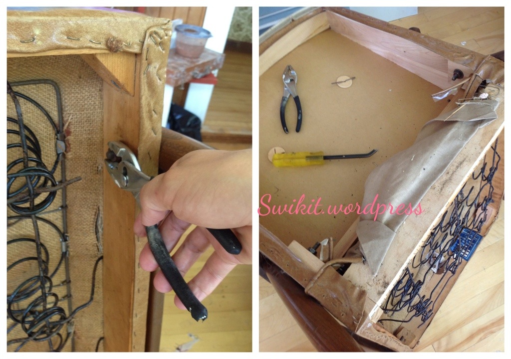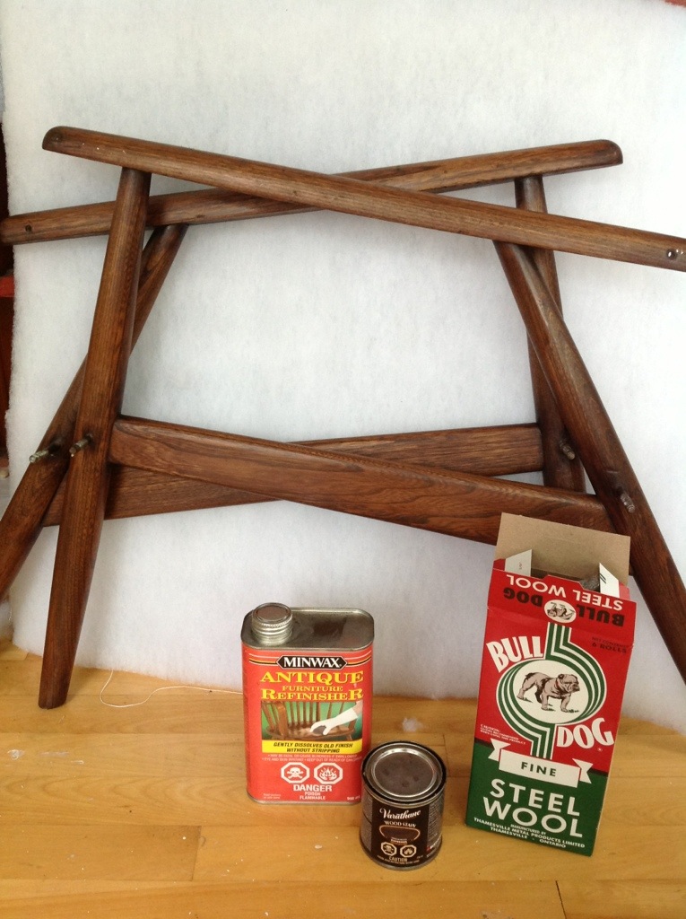 I carefully removed the Kroehler tag on the back of the chair (to put back on once finished), and removed the wood plugs so I could unscrew the wood pieces.