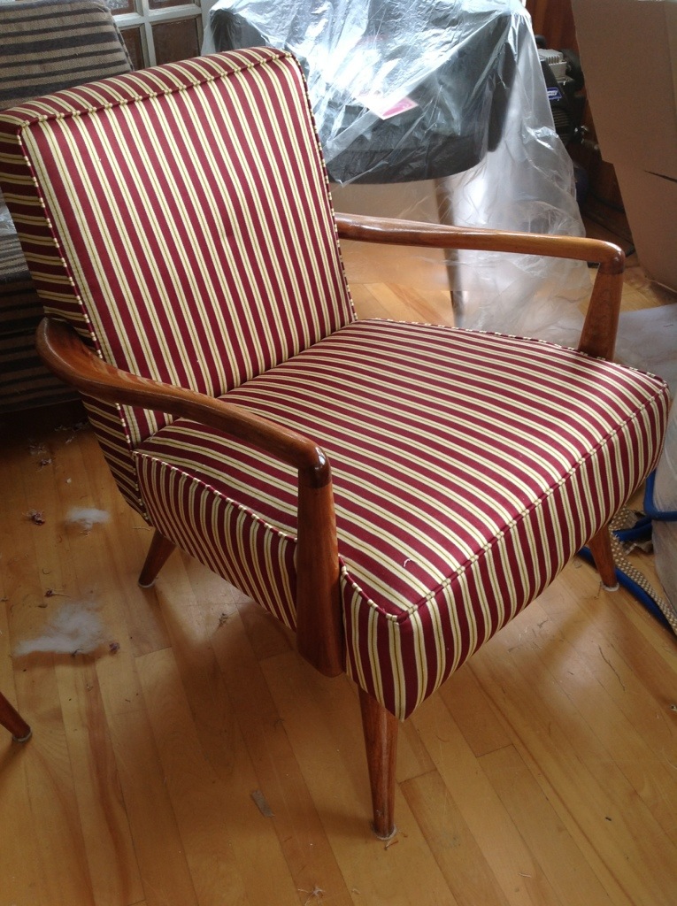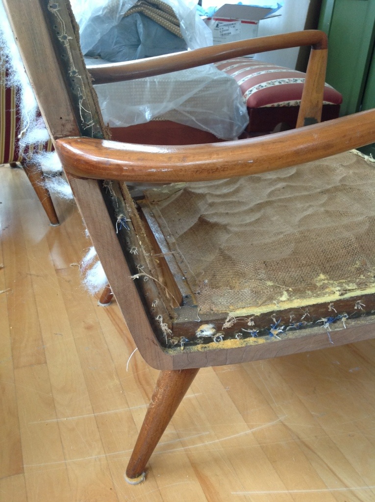 Of course, I had to strip all the old varnish off the arms and legs, and refinish all the wood, but it was worth it to reveal the wood that, obviously, was originally designed to be shown.