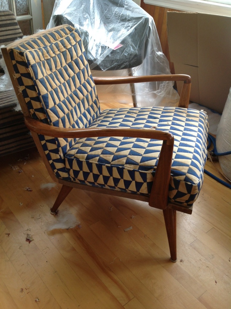 But look what else I found!!! The original amazing fabric underneath. How cool were these chairs in 1958!