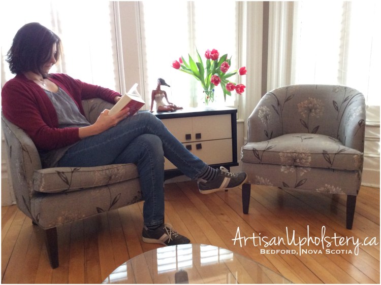 They have brand new feather cushions, and would make fantastic reading chairs. They measure 24″ x 24″ x 28″ high, so they’re quite dainty.